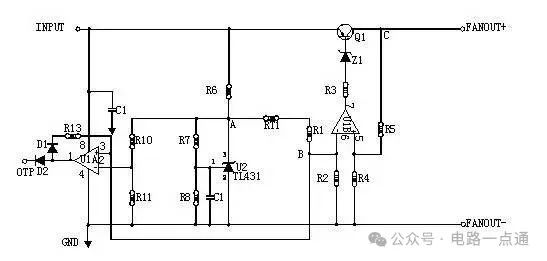 2、短路保护电路通常有两种,下图是小功率短路保护电路,其原理简述如下: