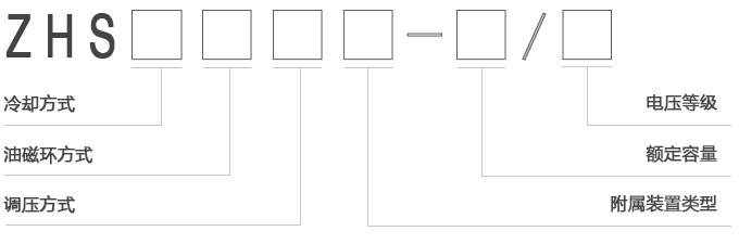 调圧方式:网侧有载调压(Z)  无励磁调压(/)  内置调圧変压器有载调圧(T)